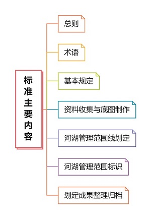 标准共7大部分,分别为总则、术语、基本规定、资料收集与底图制作、河湖管理范围线划定、河湖管理范围标识、划定成果整理归档等。