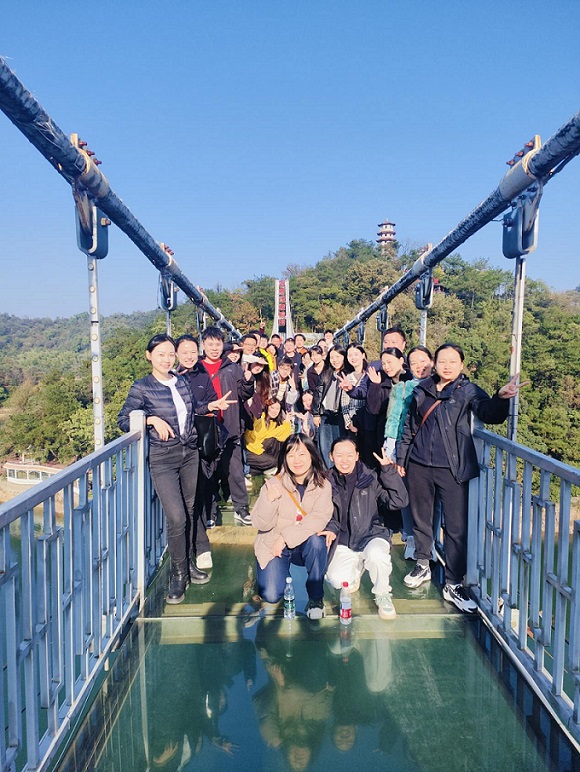 午后的石燕湖山明水秀,员工们在共享午餐后,开启了“凝心同行”的景区体验环节。丛林穿越项目中,面对高空障碍,体力好的员工主动走在前面探路,细心提醒注意事项,体力稍弱的同事则在后方鼓劲加油,前呼后应间让每一个人都成功突破自我;玻璃桥上,有人起初心生胆怯,身边伙伴立刻伸手搀扶、轻声鼓励,原本的恐惧在团队的温暖中消散,大家并肩站在桥上远眺湖光山色,此刻的“同行”不仅是空间上的相伴,更是心灵上的贴近;游船游览时,大家主动捡拾岸边的垃圾,有人感慨:“就像我们的生态工程,需要每个人都出一份力,团队的力量才够强大。”这份对团队与使命的感悟,让凝聚力有了更深厚的内涵。