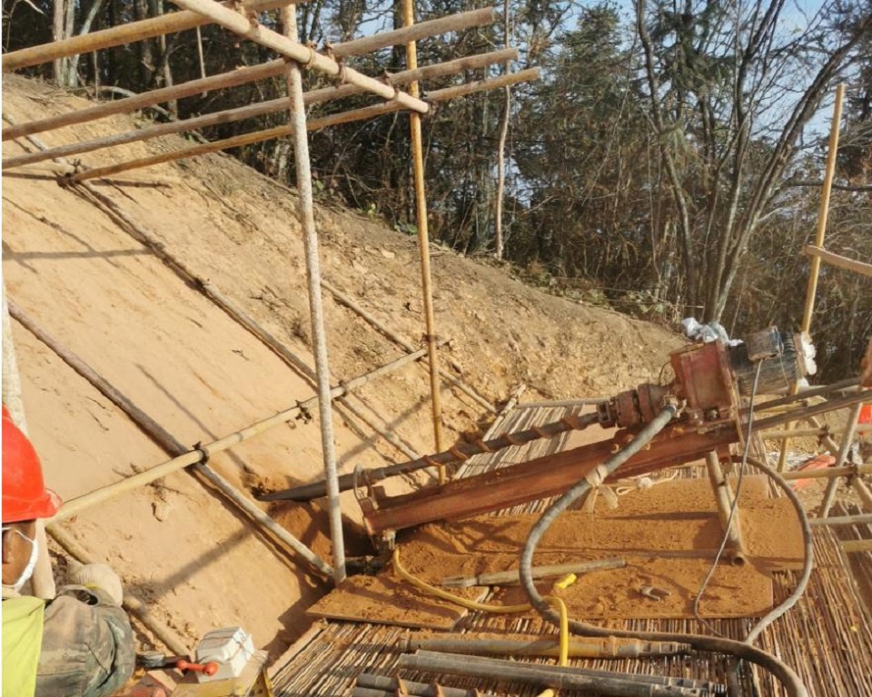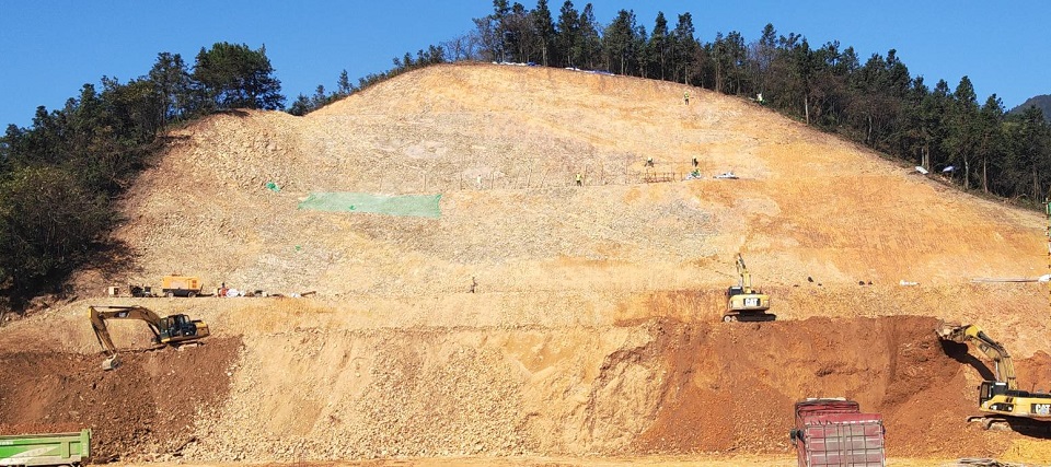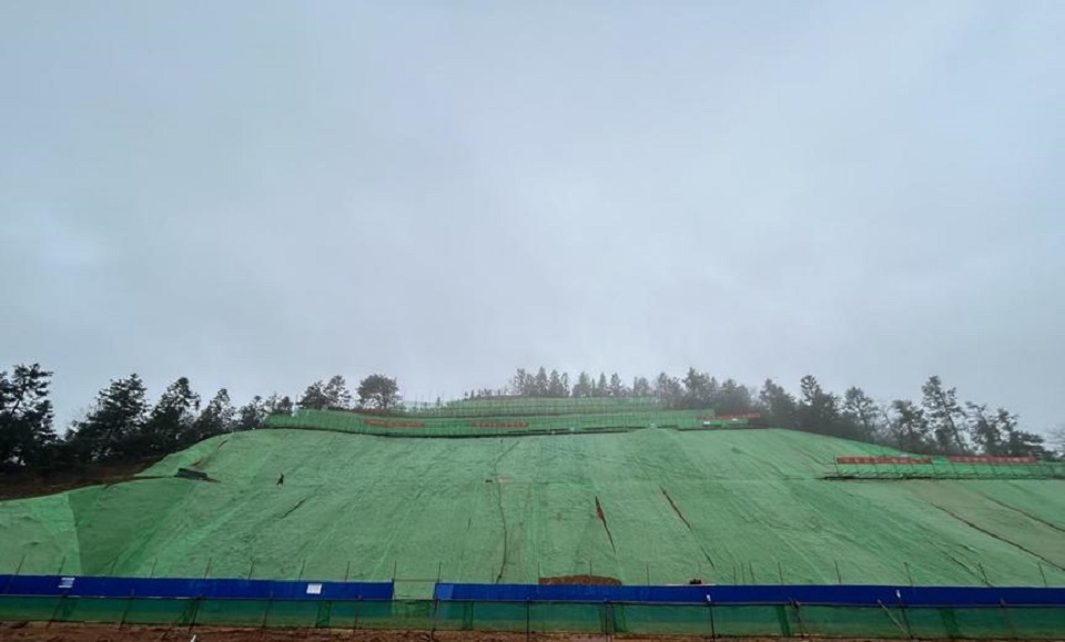 目前削坡分级已全部完成,正在锚杆锚杆环节,植被混凝土基材也在制备中,将赶在高山冰冻天气来临前,完成治理工作。