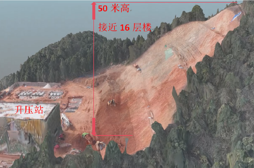 永州市境内地貌复杂多样,河川溪涧纵横交错,山岗盆地相间分布,境内相对高差1946.3米,比降达2—20%。该风电场海拔在600—1100米之间,山体坡度16°~40°左右,高差大、山势陡,其升压站场平形成了一处50余米的高陡边坡,因地质条件较差,施工不规范,边坡已发生垮塌,并且仍存在滑坡裂缝,直接影响升压站30余施工人员的生命安全、近4000万元的电气设备安全。