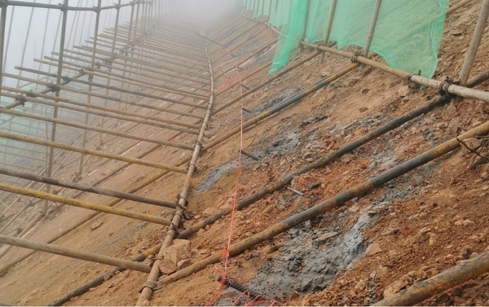 高陡挖方边坡治理的首要目标是保证边坡安全稳定,我司治理时首先采取削坡分级,保证边坡形成稳定坡比,并进一步消减荷载;然后对坡面钻孔注浆安装锚杆,使内部岩层结构稳固;再采用绿化效果极佳的植被混凝土进行喷播,迅速覆盖松散的坡面,并形成长久的、可持续的生态护坡。